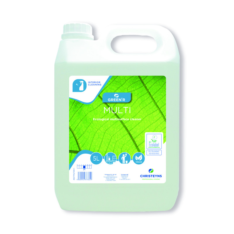 This concentrated Clover All Purpose Cleaner offers economical use for lower consumption. Dilute with water to use in a trigger spray, for use on hard surfaces and floors, including glass, chrome and marble. It is Ecolabel certified for a limited impact on the environment.